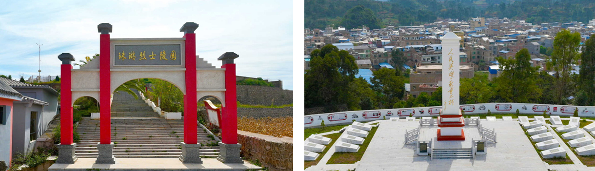 珠琳烈士陵园始建于2014年,位于云南省广南县珠琳镇珠琳社区珠琳镇中学后侧,面积2777.18平方米。珠琳烈士陵园建有烈士墓葬区、纪念碑、纪念广场及珠琳镇红色文化陈列馆,安葬烈士33位。1948年11月,国民党云南省保安第1团第3营在车骑骝反动武装的配合下,由文山向广南方向进发,企图尾追袭击在广南县一带活动的革命武装。11月9日,云南人民讨蒋自救军第1纵队独立大队在孙太甲等人的指挥下,在拉狗塘伏击敌人,毙敌50余人,俘敌营长以下135人。当地于1994年建拉狗塘战斗胜利纪念塔,后将不同时期牺牲的烈士迁葬于此,更名为珠琳烈士陵园。自广南县退役军人事务局成立以来,多次对珠琳烈士陵园进行提质改造,设施齐全、环境优美、庄严肃穆。