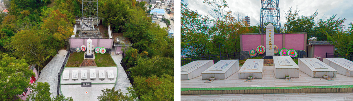 南屏烈士陵园始建于1978年12月,位于广南县南屏镇马街社区马街小组阿宝公路右侧山梁。自广南县退役军人事务局成立以来,多次对南屏烈士陵园进行提质改造,设施齐全、环境优美、庄严肃穆。陵园占地面积377.58平方米,陵园内安葬有6位革命烈士,分别是1951年在第四区安王乡春树湾剿匪战斗中牺牲的13军37师110团1营2连战士邹聚才(山西省晋城县人),在第四区芭蕉冲乡格落丫口剿匪战斗中英勇牺牲的13军37师110团司令部战士张洪奎(山西省高平县人),在第四区那比剿匪战斗中英勇牺牲的文山边防区基干团8连烈士梁排长(安徽籍,无具体姓名),在第四区花榜乡木盘洞剿匪战斗中英勇牺牲的13军37师111团3营战士陈同志(四川省简阳籍,无具体姓名),此外,陵园还安葬着2位解放军无名烈士。陵园内的草地中央,矗立革命烈士纪念碑,纪念碑的正面,为“革命烈士永垂不朽”8个金色大字。
