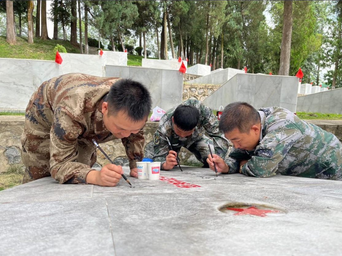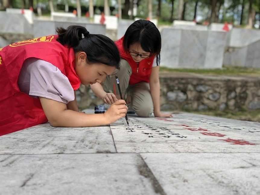 (党员干部为烈士墓描红)
