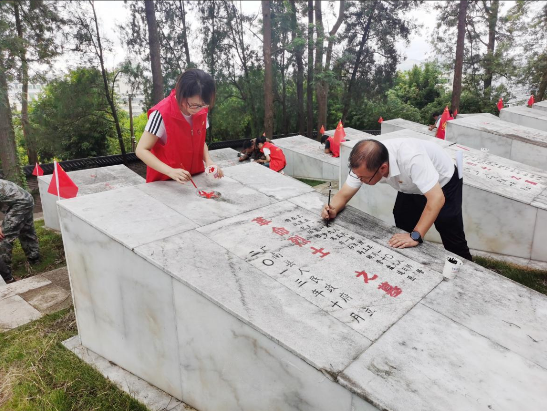 6月30日下午,广南县退役军人事务局组织全体党员干部职工、退役军人志愿者服务队等20余人到广南县烈士陵园为烈士墓碑“描红”“添新”,以实际行动致敬英烈,缅怀英烈。